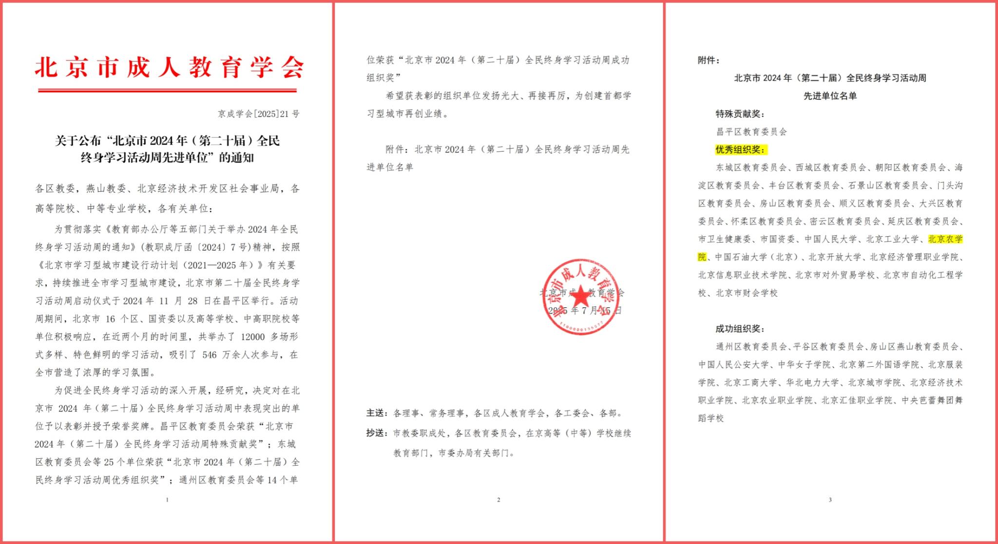 近日,北京市成人教育学会公布了“北京市2024年(第二十届)全民终身学习活动周”先进单位名单,伟德官方网站荣获“优秀组织奖”。此次获奖中,学校不仅与中国人民大学、北京工业大学、中国石油大学(北京)等高校共同跻身先进单位行列,更成为全市获此殊荣的2所市属本科院校之一。